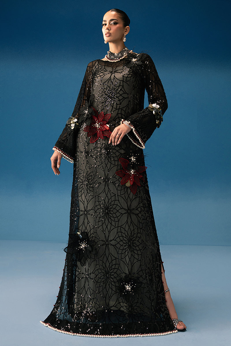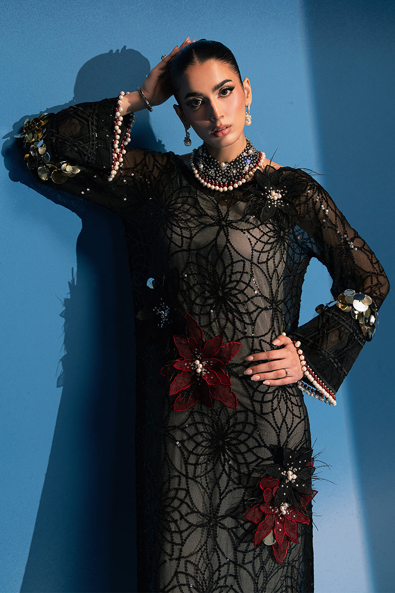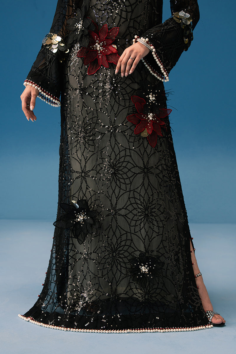 Éclipse unfolds like twilight across a secret garden. A flowing black silhouette, adorned with delicate 3D floral motifs, strikes a poetic balance between structure and freedom. With its dreamlike essence and quiet strength, it captures the stillness of moonlight on water.